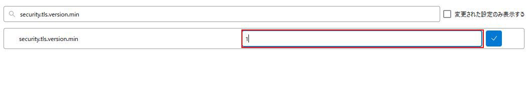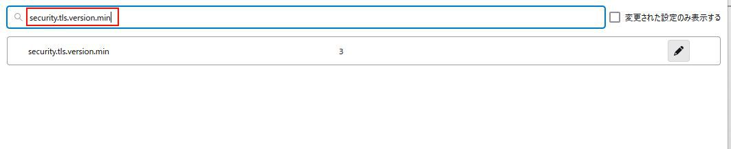 画面が切り替わり、上部の検索バーに「security.tls.version.min」を入力して検索